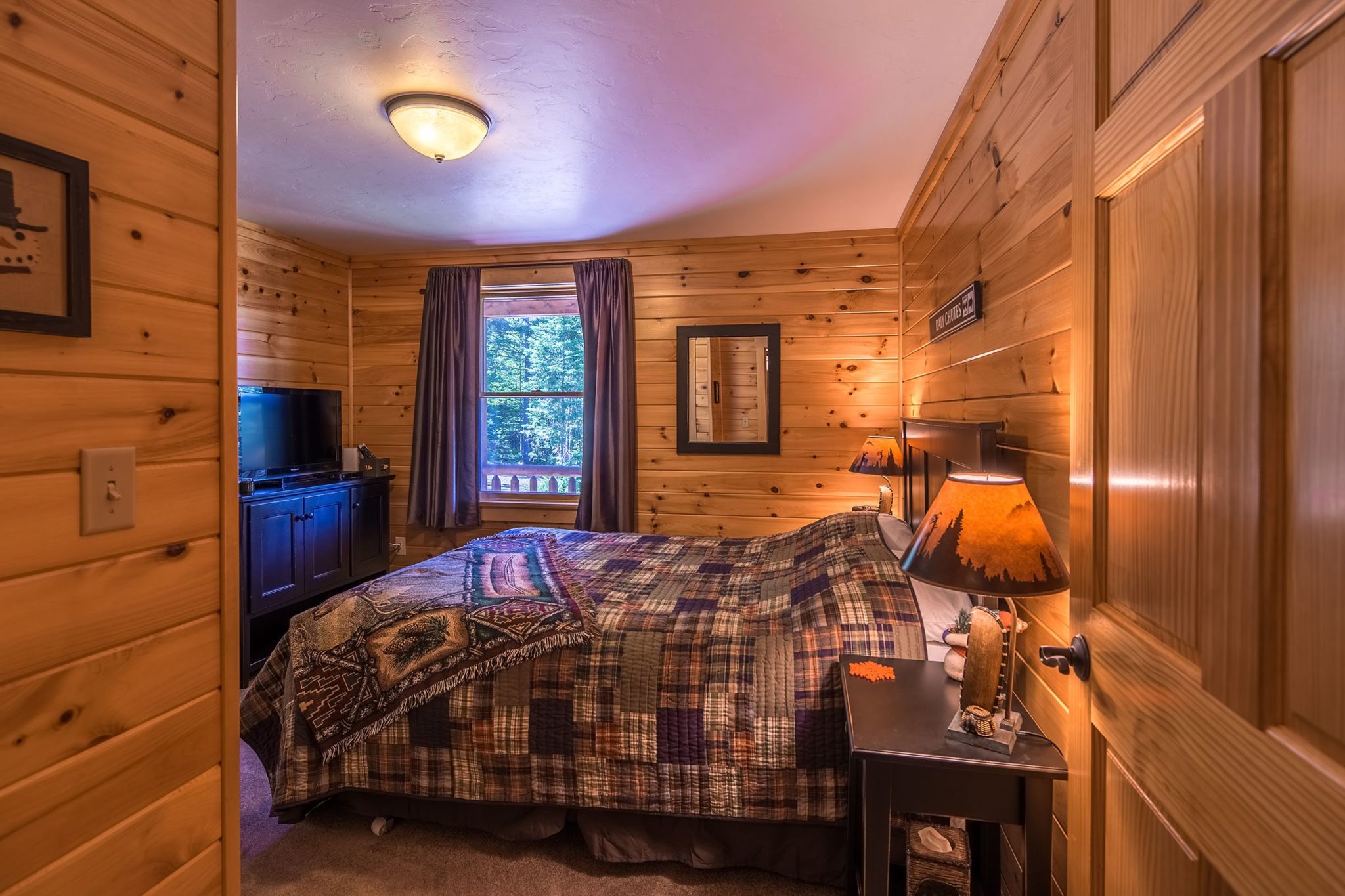 bedrooms and 5 baths, with three ensuite masters, one for each family member. Their daughter and her family have one set of bedrooms and a bath on the loft floor; their son has a separate master on the main floor. The lower level has two additional guest bedrooms that share a bathroom. Finally, a 6-bed bunk room provides expanded sleeping for kids and overflow guests. All told, the lodge can comfortably sleep 5-6 couples or 22 individuals.