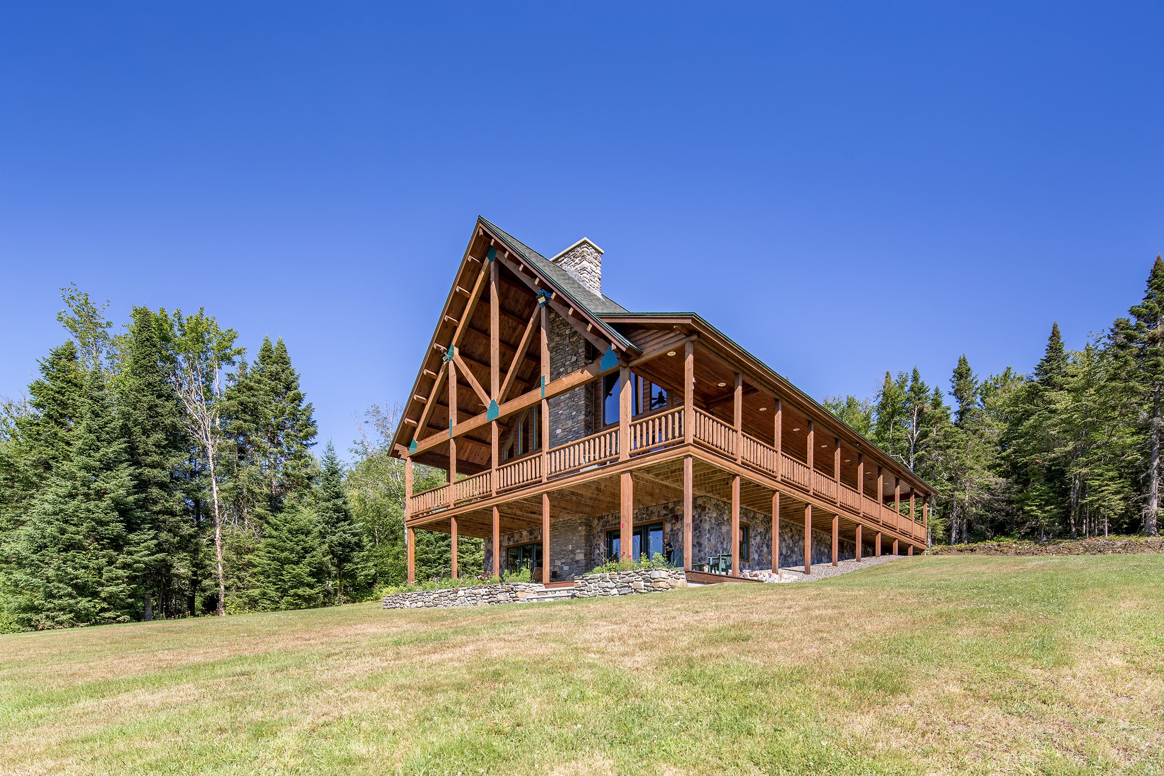 When Don and Shelley Stewart first visited Pittsburg, N.H, they fell in love with the location. When the time came to build their family retreat, they wanted to create a destination that would serve their family for generations to come. Though they had first explored conventional construction, their builders, Harold (Chummy) and Lynne Lassonde of Mountain View Construction suggested they consider building a Katahdin Cedar Log Home for these benefits—longevity, beautiful design and modern building technology. The result of their careful planning and collaboration is a stunning retreat that is sophisticated, light and airy.